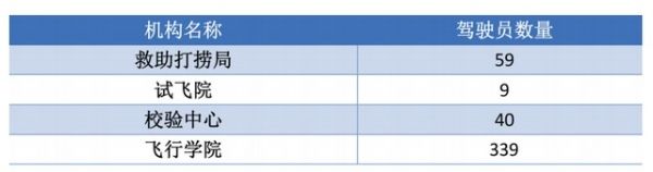 我国民航驾驶员主要分布在运输航空公司(包括121运输航空公司和135运输航空公司)、141部驾驶员学校(包括教员和学员)、91部通用航空公司、体育运动类航空器驾驶员、政府事务机构、私用驾驶员和其他人员,其中政府事务机构包括交通运输部救助打捞局、中国民用航空飞行校验中心等,私用驾驶员主要指持有私用驾驶员执照的人员。民航驾驶员有效执照中运动驾驶员执照609本,私用驾驶员执照3090本,商用驾驶员执照23988本,多人制机组驾驶员执照35本,航线运输驾驶员执照17802本。