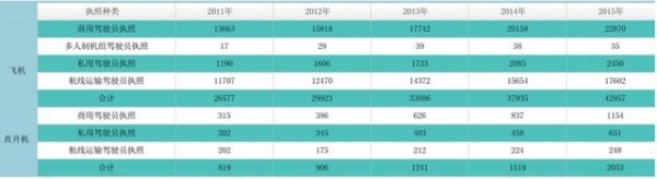 中国民用航空局飞行标准司公布《中国民航驾驶员发展年度报告(2015年版)》,报告显示,截至2015年12月31日,中国民航驾驶员有效执照总数为45523本,同比增长14.1%。