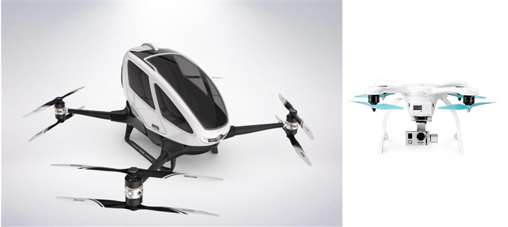亿航EHang 184 与原型亿航GHOSTDRONE 2.0智能无人机