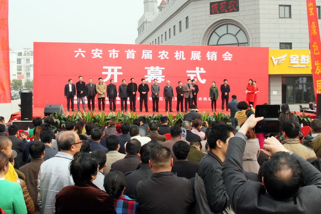 安徽六安市首届农机展销会在裕安区分路口镇六安农机城隆重举办,省农机局副局长江洪银,区领导黄战野、栾昌荣、叶庆和、罗文、陶晓婉、刘圣春,省、市相关嘉宾及农机厂商、种粮大户、农机合作社负责人等参加了展销会,