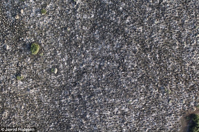 北京时间3月21日消息,最新的无人机技术正在取代传统的野生动物保护方法,在研究海鸟的筑巢地中助一臂之力。图为无人机拍摄的南极附近麦夸里岛上的帝企鹅换羽期场景。