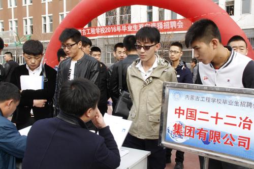 呼和浩特新闻网3月19日讯(记者 张文娟)3月19日上午,内蒙古工程学校举办了2016年毕业生校园招聘会,30余家用人单位带着400多个招聘岗位走进校园,与学生面对面,双向选择。