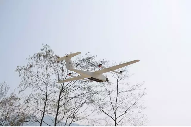 上午10点30分,“大鹏”原地垂直起飞,高度超过现场树木并达到指定高度后,转为固定翼在九皇山进行航线飞行,并对九皇山进行了高空全景拍摄。