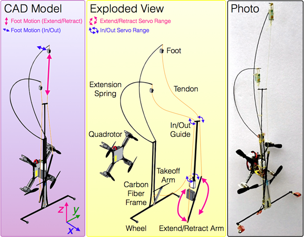 最近,美国斯坦福大学仿生与灵巧操作实验室(实验室网站)公布了他们正在开发的一种新机器人:既能在空中飞,又能在竖直墙壁上降落,然后还能顺着墙向上爬。