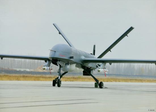 最重要的就是“彩虹-4”强大的作战能力!彩虹-3无人机体型较大,其翼展8米,机长5.5米,起飞重量达640公斤;有效载荷60公斤,最大载荷100公斤,可携带光电侦察设备和各类吊舱,另外专门为该无人机研制的AR-1型空地导弹,采用“惯性+GPS”复合制导,重量仅45公斤,弹头装有6.8公斤的高能混合炸药,最大破甲厚度可达到1.4米!据介绍,该空地导弹的整体性能较美制“小牛”导弹更加出色!携带此导弹的“彩虹-4”可以毫无压力地摧毁视野之内的所有装甲目标!