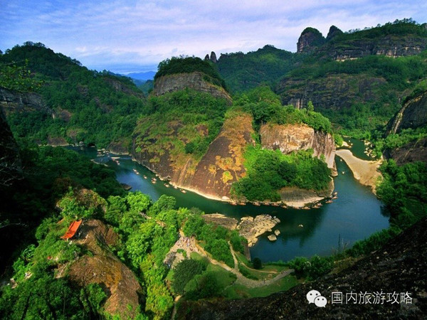 桂林 山水甲天下,不及武夷一小丘。在武夷山临水可观山景,登山可望水秀。山与水的交织是美感与灵性的完美结合。 “三三秀水清如玉”的九曲溪 ,织就了武夷山一游的流连忘返。 “六六奇峰翠插天”的三十六峰、九十九岩,绘就了奇峰异石的动人画卷。春光烂漫的五月天,乘竹筏漂流于九曲溪,感受船在水中走,人在画中游的绝美意境,惹人平添一丝难 舍的情怀。抬头待见悬崖峭壁上的“武夷船棺”,千百年历史刻画出的时色更迭令人感慨万千。
