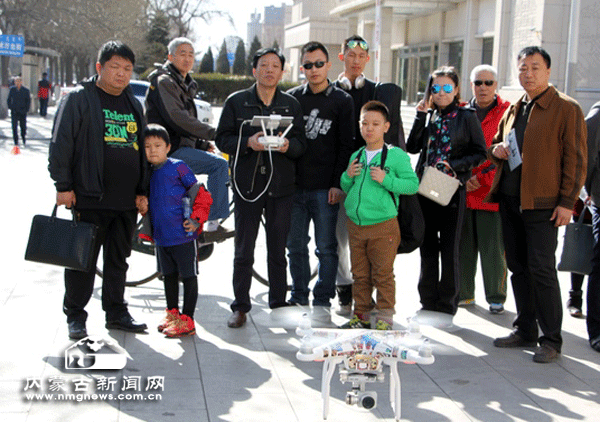 3月26日下午,近百名呼和浩特市民围着一个小小的白色机器大呼“惊奇”,这个机器正是最近火遍朋友圈的“无人机”。