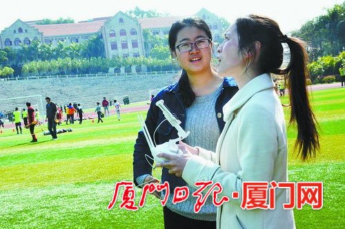 大一女生谢同学好不容易等到遥控器,正欲“一飞冲天”,结果无人机一升空,谢同学就“懵”了:“天空有三架,哪一架是我的?”幸亏周围的人频频提醒,才避免了“撞机”事故,不过,因为紧张,她把拍照键错按成录像键。