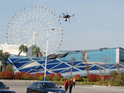 3月27日,在山南新区,一架无人机在上空飞行,只见它时而穿行于高空,时而又追逐着指定目标监控拍摄。这架无人机实现了手动操控、自动飞行的地空全方位技术体系,引领安防行业进入立体监控时代。