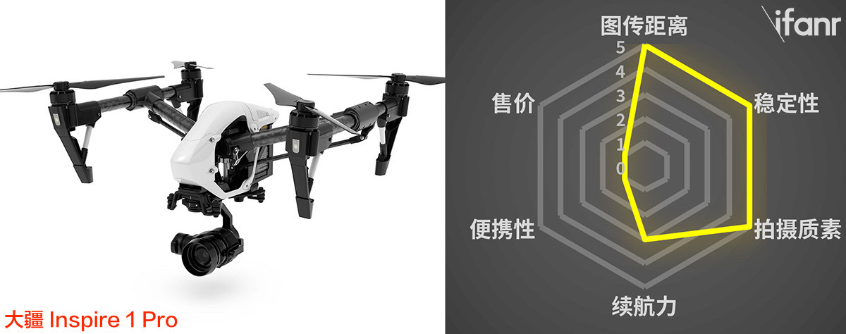 Inspire 1 Pro: 目前市面上拍摄能力最强的航拍机,没有之一。Inspire 1 Pro 虽然是最重、最笨重、也是最昂贵(官方定价:17999 元)的消费级无人机,但如果想要最专业的航拍质素,目前消费级无人机当中,就只有 Inspire 1 Pro 能使用无反相机级别的摄像镜头。你要成为最专业的航拍专家?Inspire 1 Pro 不会让你失望。