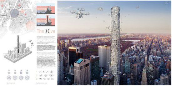 摘要:最近一座专门为无人机设计的摩天大楼获得了eVolo杂志建筑大赛的二等奖。该摩天大楼名为Hive,旨在让无人机进入到纽约市的城市生活中。随着无人机的能力越来越广,人们更多地希望无人机能够走进大众的生活,于是美国的设计师Hadeel Ayed Mohammad、Yifeng Zhao与Chengda Zhu设计了这幢摩天大楼。eVolo解释说这个摩天大楼是对432公园大道土地的创意性利用,该摩天大楼将作为个人使用与商用无人机的停驻点以及充电站。