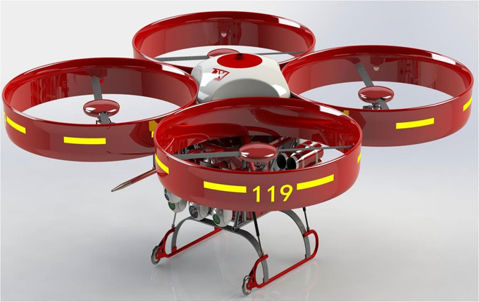 是针对武警消防、企业消防等特种部门量身定制的快速反应机型,可携带实时图传系统、扩音系统,可完成火场快速侦察、预警、巡视、疏散等任务,携带的消防水枪、灭火弹对高层小范围火场针对性快速压制扑灭。该机型具有反应速度快,操控灵活,噪音小,结构轻便、机动性能好、抗风能力强、航程远等优点。