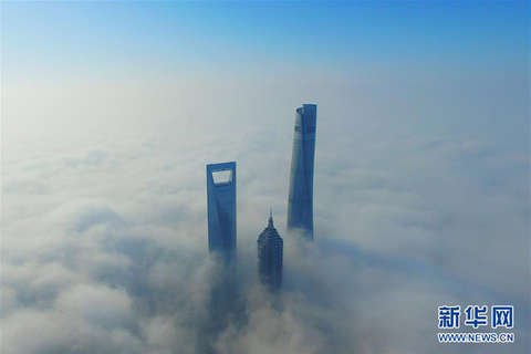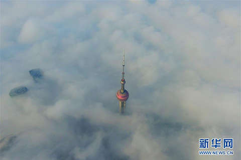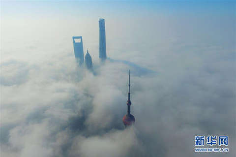 气象台发布大雾橙色预警,大部地区出现能见度小于500米的雾。雾锁申城,“云海”中时隐时现的摩天大楼颇为壮观。