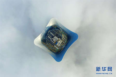 航拍大雾中的上海浦东陆家嘴高楼群,如梦如幻。图/沈春琛