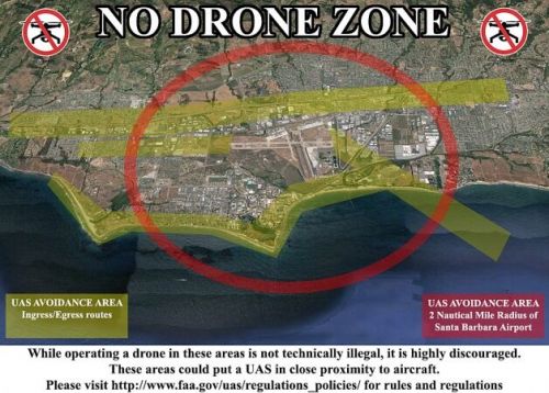 近日,美国联邦航空管理局划定新的“无人机禁飞区”地图,该禁飞区范围为圣巴巴拉机场周边两英里。尽管目前在该区域内飞行无人机尚不构成违法,但是此类做法并不受到鼓励。