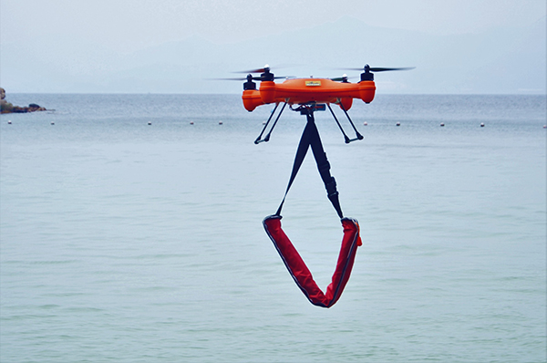 Splash Drone 的官方配置里还有一个投放装置,飞行器最大可载重一公斤的物资进行投放。这也是消费类无人机中通常不具备的能力。