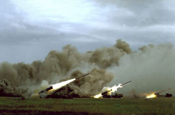 俄军BM-30“龙卷风”火箭炮群进行实弹打靶/图 来源网络