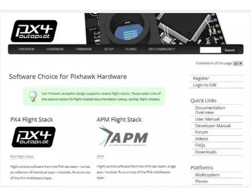 这个项目源于苏黎世联邦理工大学的计算机视觉与几何实验室、自主系统实验室和自动控制实验室的PIXHawk项目。PX4FMU自驾仪模块运行高效的实时操作系统(RTOS),Nuttx提供可移植操作系统接口(POSIX)类型的环境。例如:printf、pthreads、/dev/ttyS1、open、write、poll、ioctl等。软件可以使用USB bootloader更新。