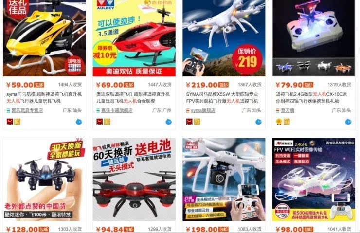(淘宝主要在销售的玩具无人机 / 图片来源:taobao.com)