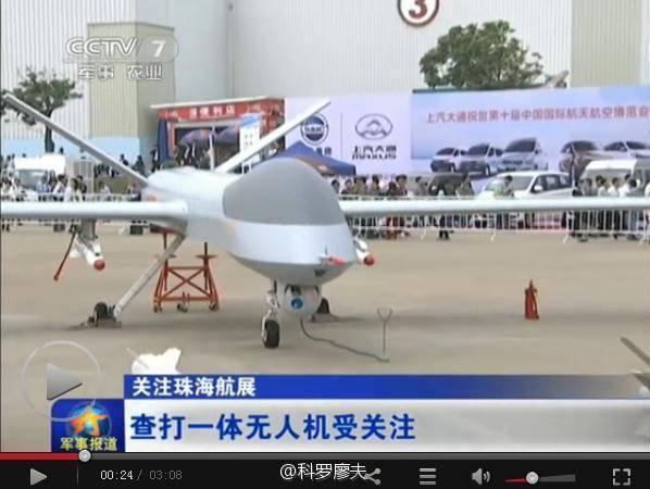 “翼龙”无人机中低空长航时多用途无人机,2012年首次以实机亮相珠海航展,2014年出现在珠海航展上的“翼龙”无人机已经拥有中国人民解放军空军的识别标志,机身编号76024,部队代号GJ-1“攻击-1”。这意味着“翼龙”无人机那时已经装备部队正式使用。翼龙机长为9米,翼展为14米,机高为2.77米。采用100马力活塞式发动机驱动。起飞重量为1100千克,武器载荷同样是200千克,燃料载荷为300千克。最大航速280公里/小时,航程达到4000公里,续航时间达20个小时。