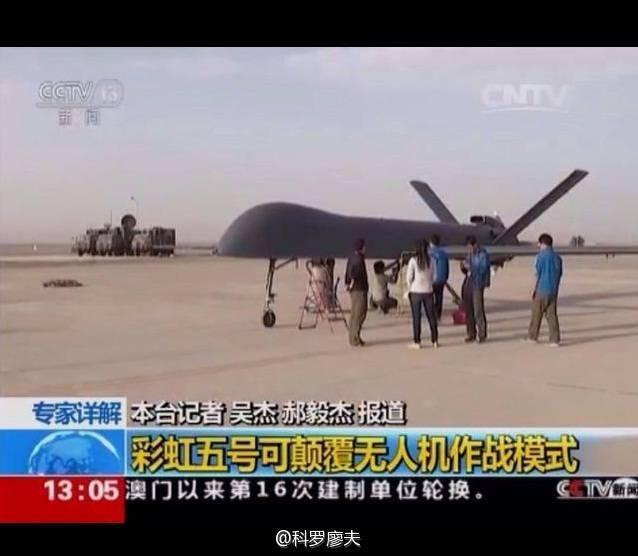 去年8月30日,中国自主研制的大型察打一体无人机“彩虹五号”,日前在甘肃实现了首飞。“彩虹五号”无人机是在“彩虹-4号”无人机基础上的放大改进型。与“彩虹四号”相比,“彩虹五号”的起飞重量提高了2.3倍,载重能力提高了2.5倍,配备更为完善的侦察、指挥和武器弹药,从外形尺寸、起飞重量,到作战能力都达到了国际上的领先水平。