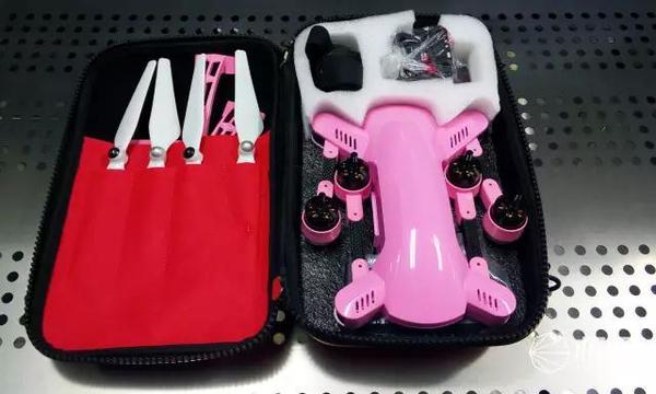 打开收纳箱,内部空间利用十分合理,折叠设计,轻便携带。笔者试用的这款配色为甜心粉,略带骚气,官方提供的其他机体配色分别是极致黑、星空蓝和中国红。