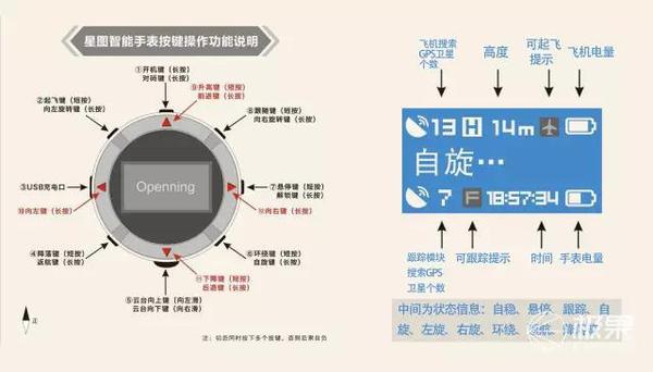 智能手表的按键可以操纵无人机,其状态参数也都能通过屏幕读取。