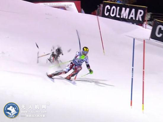 2015年12月23日,国际滑雪联合会宣布,今后禁止无人机出现在其举办的高山滑雪世界杯各站比赛的现场。起因是在前一天的比赛中,一架载有摄像机的无人机坠毁在雪坡上,险些砸中滑雪名将马塞尔·赫斯切。据说国际雪联负责男子赛事的总监马库斯·瓦尔德纳为此非常恼火,甚至发狠话说:“只要我还在这个位子上,无人机就别想出现在赛场上。它们对选手的安全有百害而无一利。”