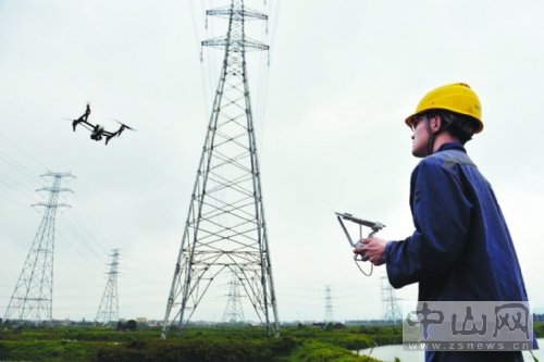 昨日下午,板芙西江边的高压线塔下,中山供电局输电无人机服务队的队员使用无人机检查铁塔和线路。据悉,这是中山输电无人机服务队完成培训后,首次在现场开展无人机交叉跨越杆塔检查及设备状态评价工作。队员们在15至20 分钟左右的时间,通过操控无人机,对铁塔和线路进行拍照和巡视检查,完成了之前要人力40分钟左右爬上塔顶检查的工作,省时又安全。