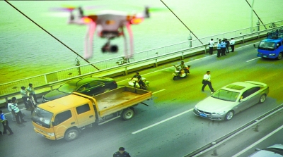 2014年8月8日,白沙洲大桥劫持人质现场,无人机迅速出动,并适时将画面传输到指挥室。