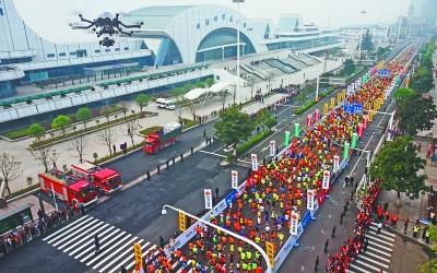 4月10日的“汉马”安保工作中,武汉警用无人机共起降50余架次,圆满完成了各项任务。