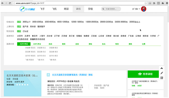 网友登录无人机世界官网uavvv.com,可以按照地域、价格、机型等维度查找学校和课程,网站将负责解答网友的问题,并收集有意参加培训的学员资料,反馈给相应的机构。据介绍,网站目前已经和全国数十家无人机培训机构签署合作协议,网友通过“无人机学院”报名参加培训,不但可以节省时间,选择靠谱的培训机构,还可以加入最大的飞手社群,享受无人机世界的飞手报道、沙龙活动、对接工作和飞行任务等多项权益。