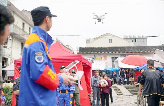 通过手机操控,工作人员根据无人机收集到的画面信息可以实时了解各处的人流情况。“会市当天,人潮拥挤,我们志愿者人力有限,很难通过人工了解每一处的人流量,一旦发生突发状况,人员未必能够及时到位。”海鹰救援队的志愿者说,“启用无人机,我们可以预判人流情况,随时前往人流量密集处做好疏导工作。此外,我们还准备了皮划艇,可应对紧急疏散。”
