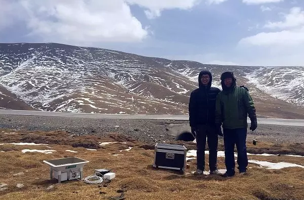 这幅照片是4月初,范殿梁博士和李牧博士在青海高原海拔4460米的海南藏族自治州地区做无人机高海拔检测,“缺氧气却不缺勇气,海拔高志气更高”!