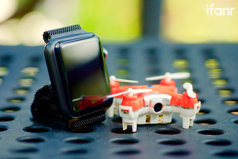 轻巧:由于小四轴的设计远远较无人机简单,因此它的体积和重量可以比无人机小得多:无人机一般的轴距为 350mm,但不少的小四轴的轴距只有 120mm,甚至是一只手表大小也有(下图),即使在家里或办公室练习也可。
