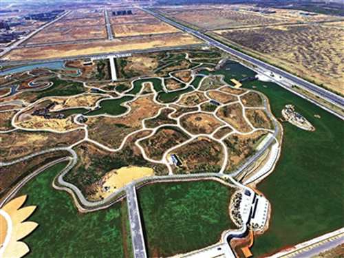 昔日,黄河东岸黄沙漫漫、荒野千里,经过4年的建设,滨河新区廊亭迂回,绿树成荫,已经拥有近10万亩绿化面积,形成了黄河东岸的一道绿色生态长廊。在荒山滩涂上,工程车辆穿梭往来,机器轰鸣,大数据中心、国际医疗城、国际科教城、科技产业城等施工现场项目建设热浪袭人,一座座大厦、一排排厂房平地而起。总面积1335平方公里的滨河新区正向着现代化、国际化迈进,一座国际化、现代化的生态园城正迎面而来。