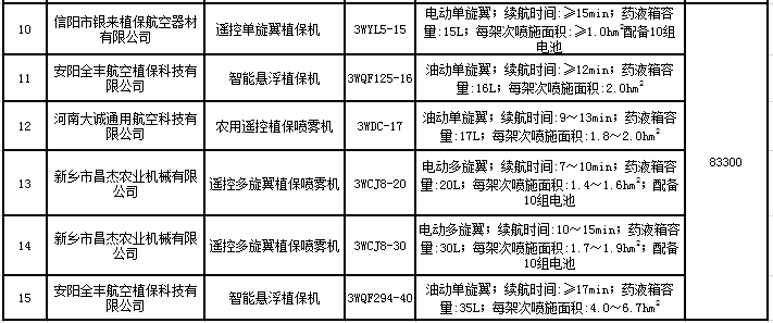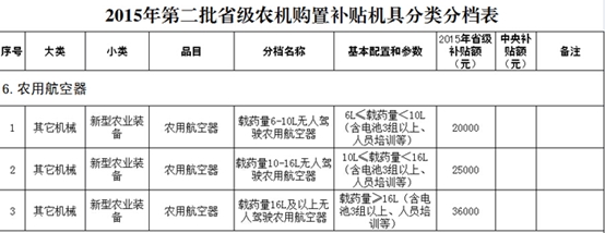 河南省专门制定了《河南省农用航空器购置补贴试点方案》,选择农用航空器作为农机新产品补贴试点产品。对载药量10公斤和10公斤(含10公斤)以上不同机型,实行省级财政资金定额补贴。