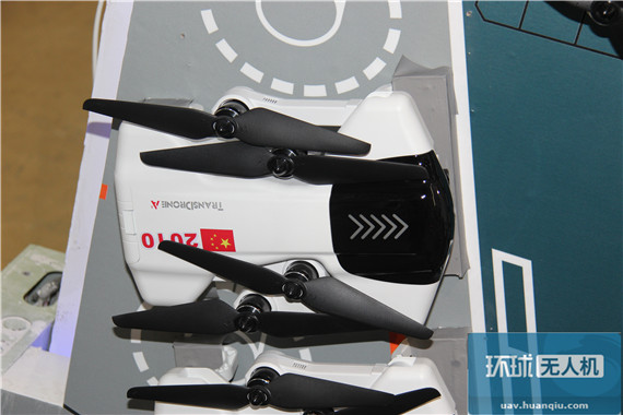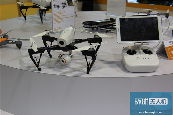 零度展台上的“空影”无人机,这就是那架传说中的“腾讯无人机”。展台上的机子也没有云台,但是可以折叠机臂。