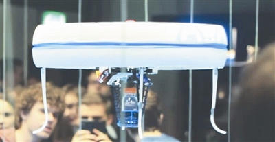 图为餐厅内的“蓝色杰伊”无人机。