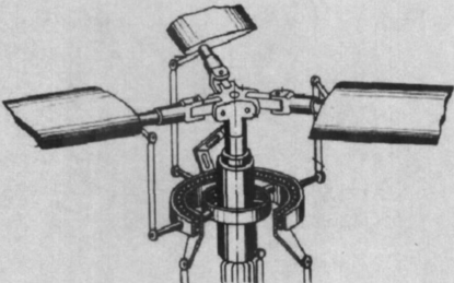 该类涵道结构采用旋转倾斜器,通过变距拉杆改变旋翼周期变距从而控制飞行器姿态。类似于直升机的主旋翼结构。MR.城堡并未接触过采用共轴双旋翼结构,耦合飞行的涵道无人机产品,因此不确定是否完全采用直升机主旋翼那种铰接式,还是采用半铰式,但从上图来看应该是采用半铰式结构。