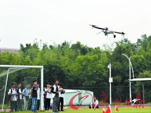 4月27日,爱好者操纵无人机在广州大学城试飞。 广州日报记者高鹤涛摄