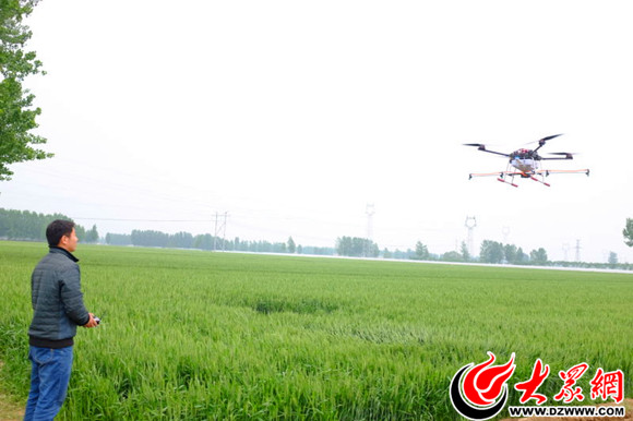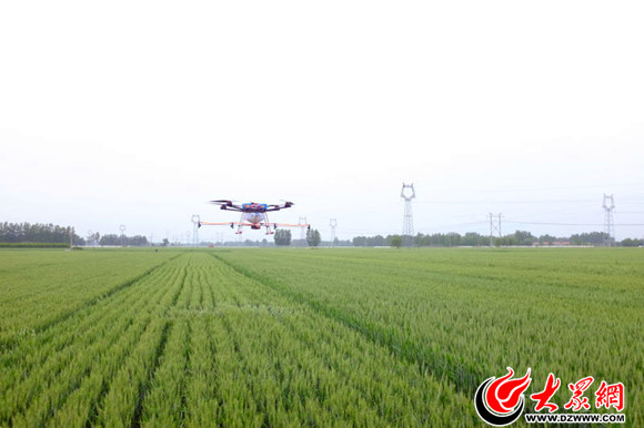 菏泽首款自主研发制造的植保无人机,首次进行飞防作业
