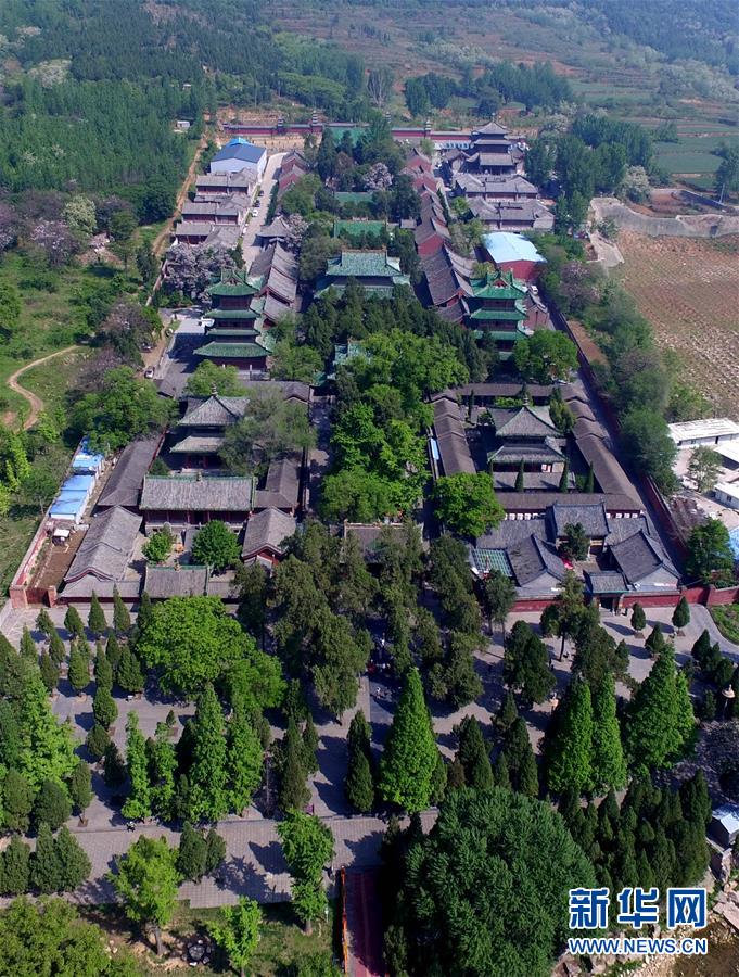 这是位于河南省登封市嵩山脚下的少林寺(4月28日摄)。位于河南省登封市嵩山脚下的少林寺,始建于北魏太和年间(公元495年),是中国汉传...