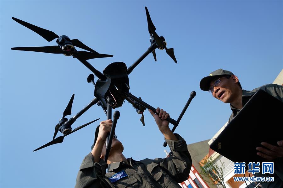 4月30日,参赛队员进行无人机起飞前的调试。当日,江苏省首届无人机摄影大赛在盐城市大丰港开赛,来自全省19个无人机飞行团队的8种机型参加此次大赛。 新华社记者韩瑜庆摄