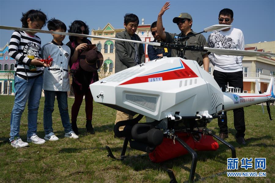 4月30日,参赛队员向观众介绍无人机的性能。当日,江苏省首届无人机摄影大赛在盐城市大丰港开赛,来自全省19个无人机飞行团队的8种机型参加此次大赛。 新华社记者韩瑜庆摄