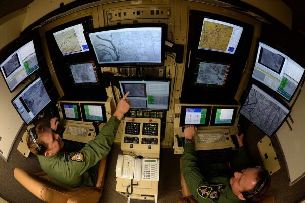 资料图:英军无人机基地内的无人机控制员。