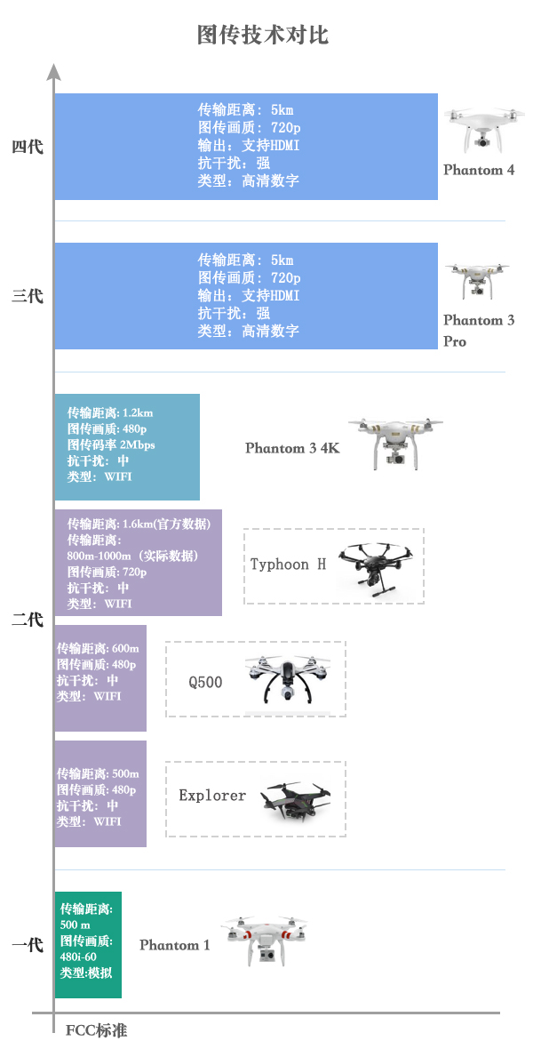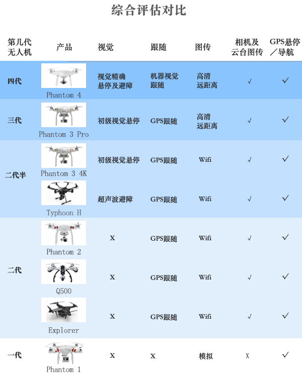 通过基本的产品功能和技术对比,我们可以清晰评判一款无人机属于第几代产品(或技术),对于购机也有很大的参考意义。