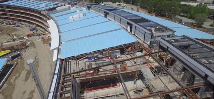 飞船造型的新总部位于加州库比尼诺市,建成后可容纳12,000余名苹果员工。其主建筑将拥有面积达7万平方英尺(65032平方米)的太阳能电池板,目前已完成25%。