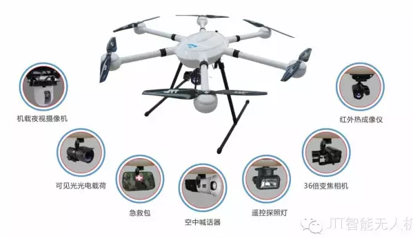 T60有着独特的外形设计,军工级的工艺品质,中度抗风防水更是不在话下,能工作于天气恶劣的环境中。可配载运动摄像机,小型光电吊舱;扩展机载设备:红外热成像仪,36倍变焦相机、投掷平台等专业级机载设备。随着JTT-T60载荷功能的日渐完善,让T60成为我们生活名副其实的大帮手。