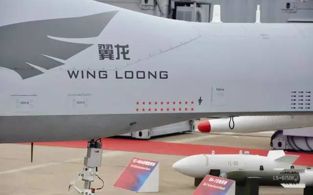 在航展现场,展示的“翼龙”身上有15颗导弹和20个小红星的标志,这分别代表这架无人机成功发射的导弹数,以及它完成的任务次数。这也是国际上(美国)的一贯做法。